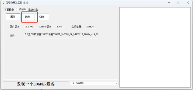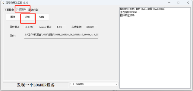 注意:发现设备必须是loader,如果是maskrom则可能刷机不成功!!!