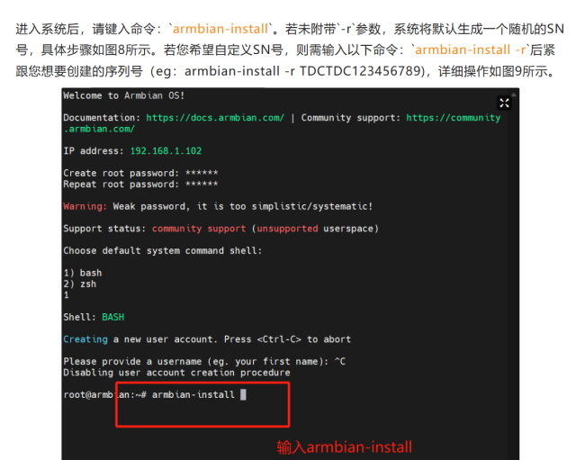 2、插SD卡,按住reset,插电,等几十秒,松开reset,接hdmi看armbian的界面出来,进入系统就是常规的 armbian-install 环节(可查看第六步中的图9和图9之后的操作)